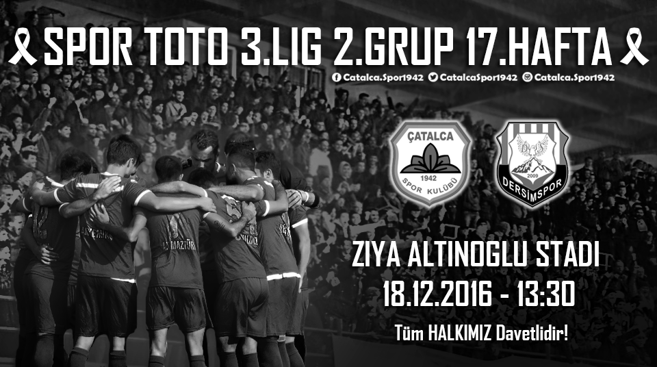 HAYDİ ÇATALCA HALKI PAZAR GÜNÜ DERSİMSPOR İLE EVİMİZDE KARŞILAŞACAĞIZ BU ÖNEMLİ MAÇA TÜM ÇATALCA HALKINI YAĞMUR ÇAMUR DEMEDEN MAÇA DAVET EDİYORUZ!