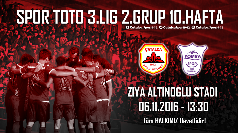 Spor Toto 3.Lig 2.Grup 10.Haftasında rakibimiz Yomraspor karşılaşma 06.11.2016 tarihinde 13:30'da Ziya Altınoğlu Stadında oynanacaktır.